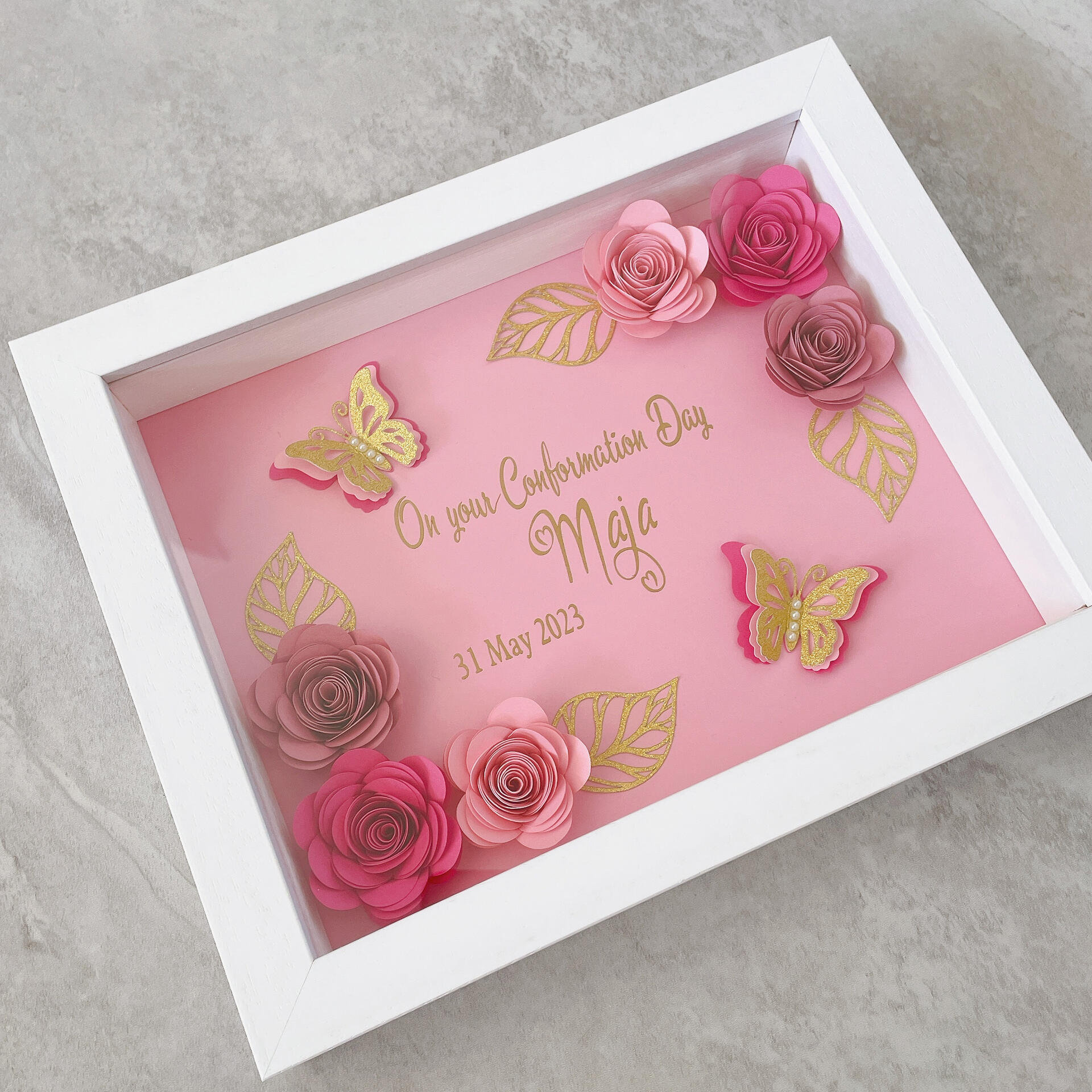 A timeless personalised gift made with handcrafted roses.