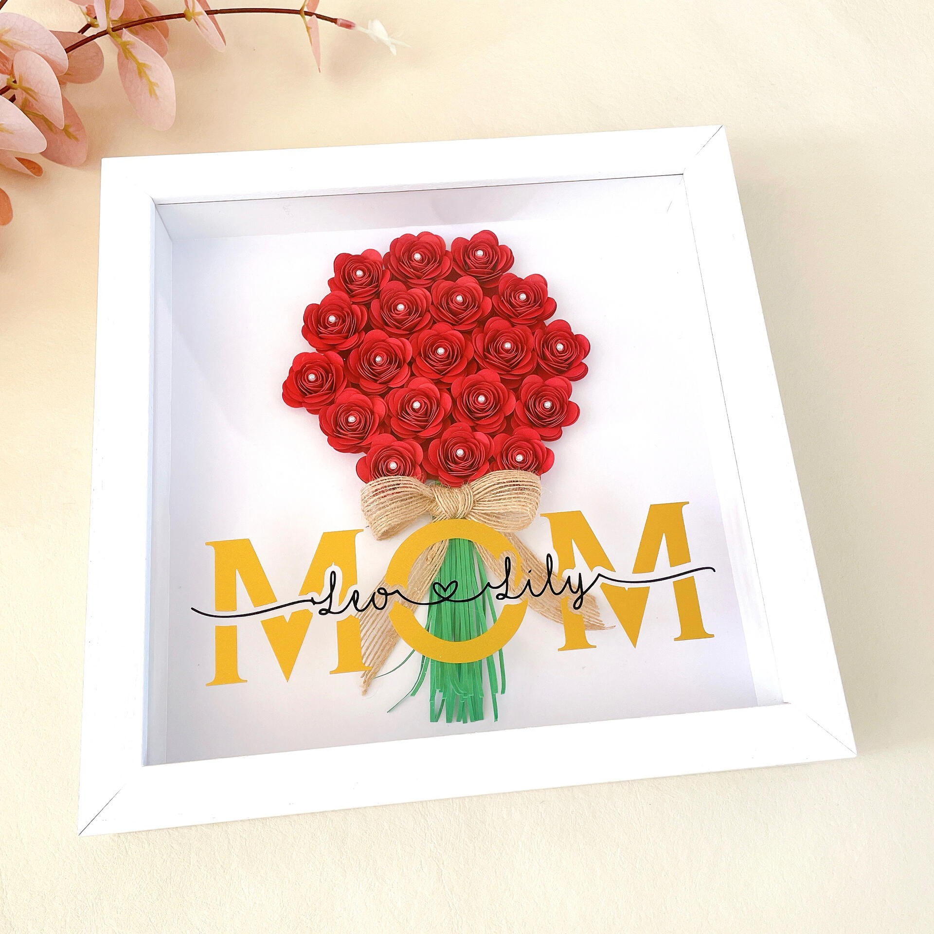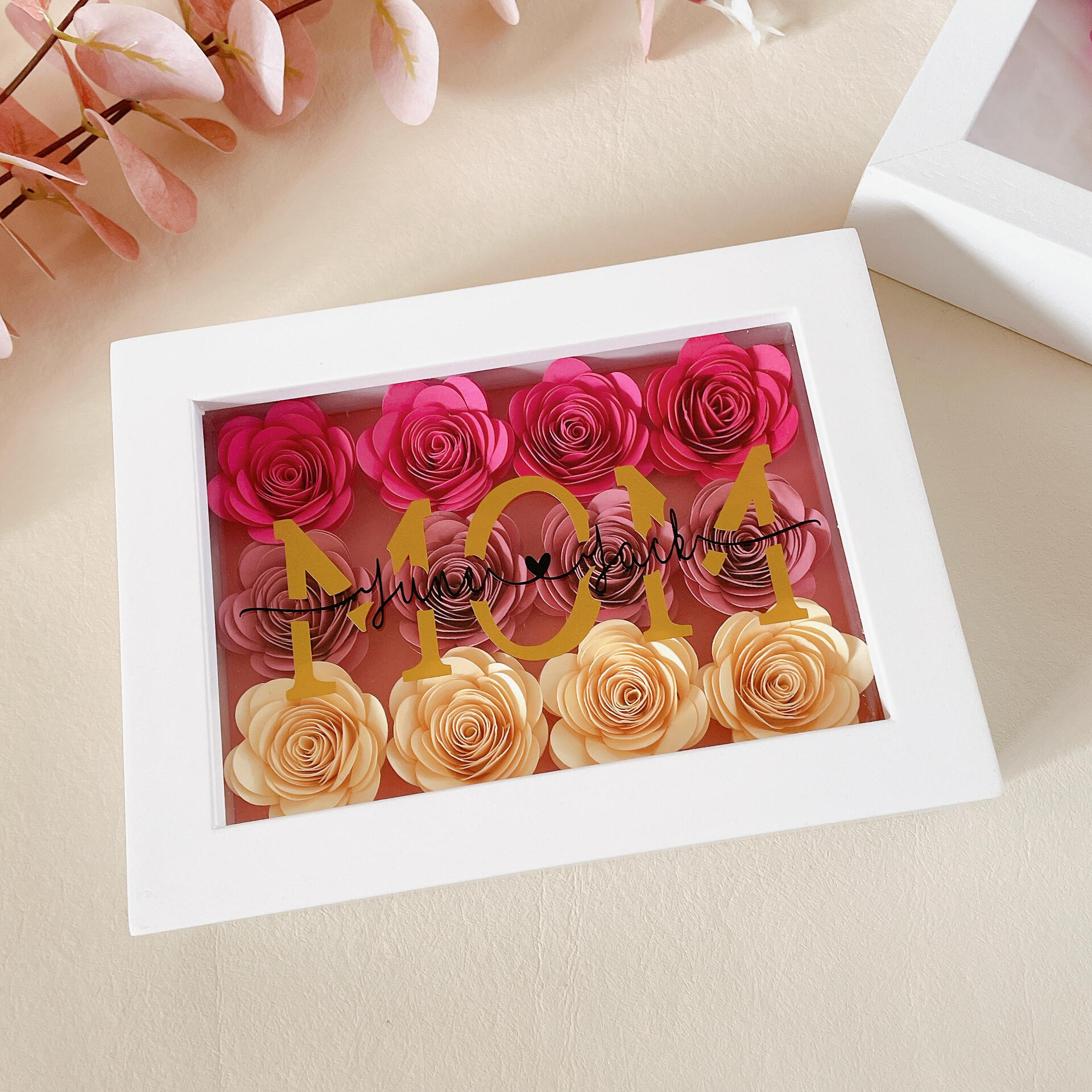 A timeless personalised gift made with handcrafted roses.