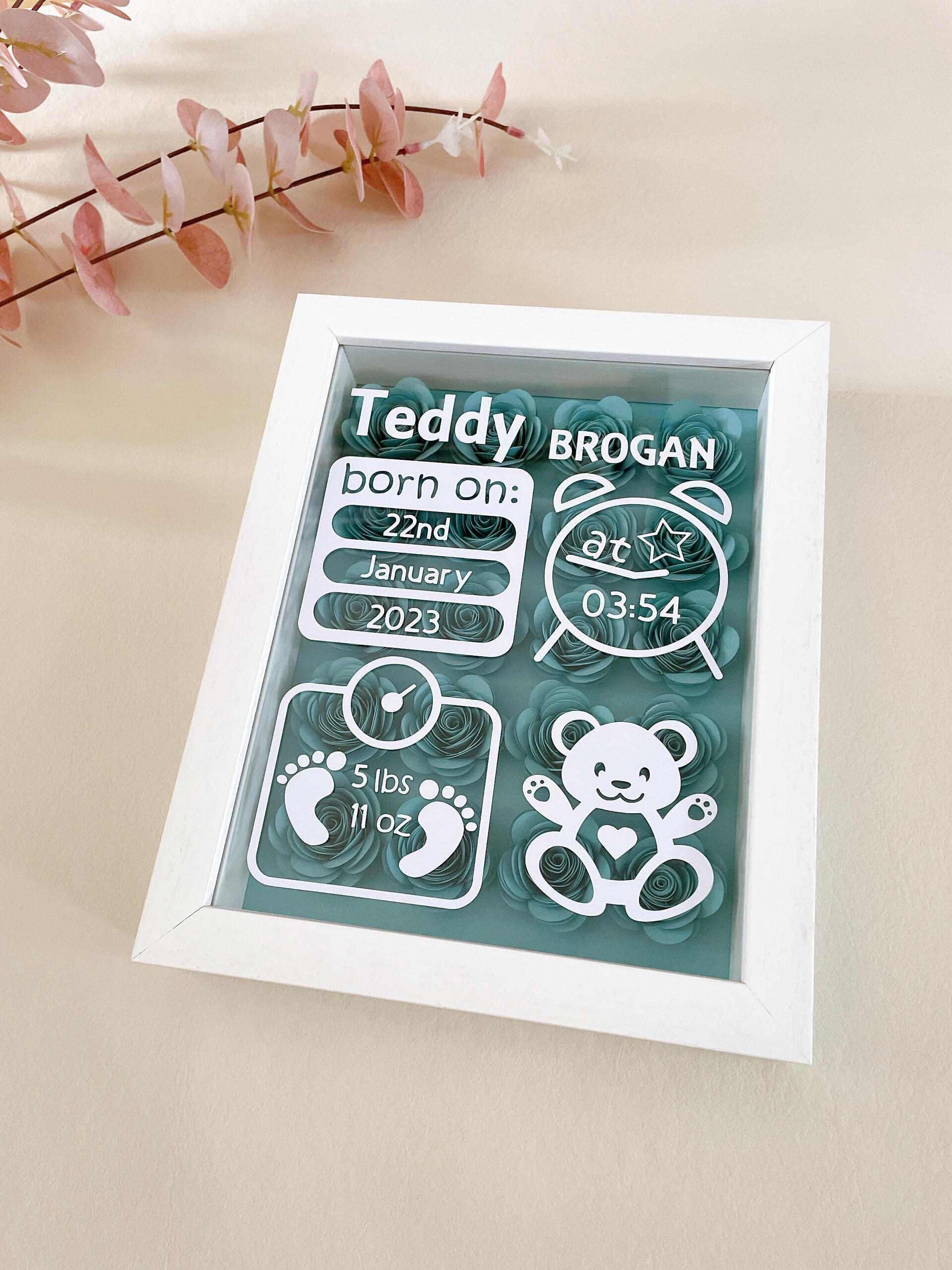 Customise with baby’s name, birth details and special touches